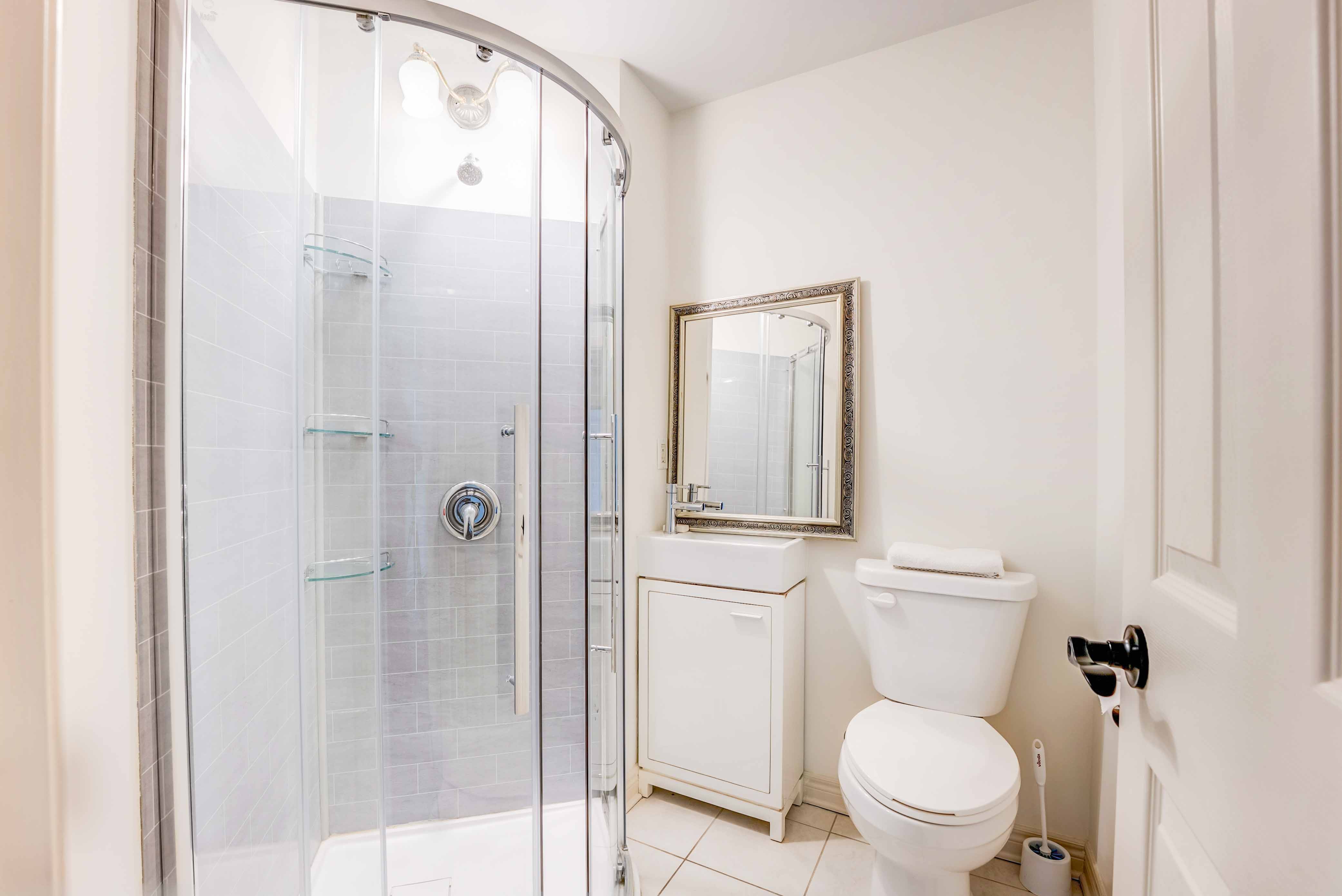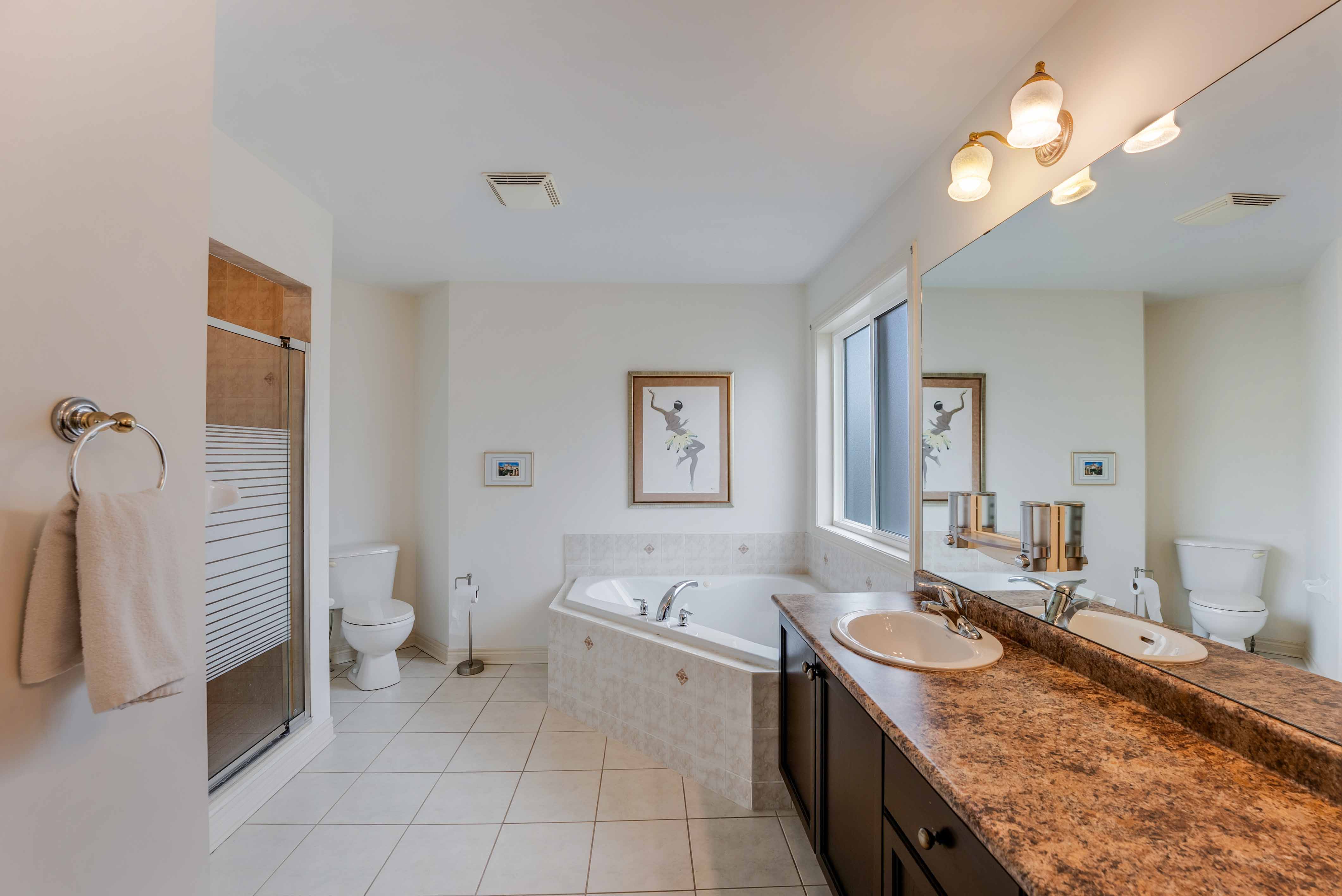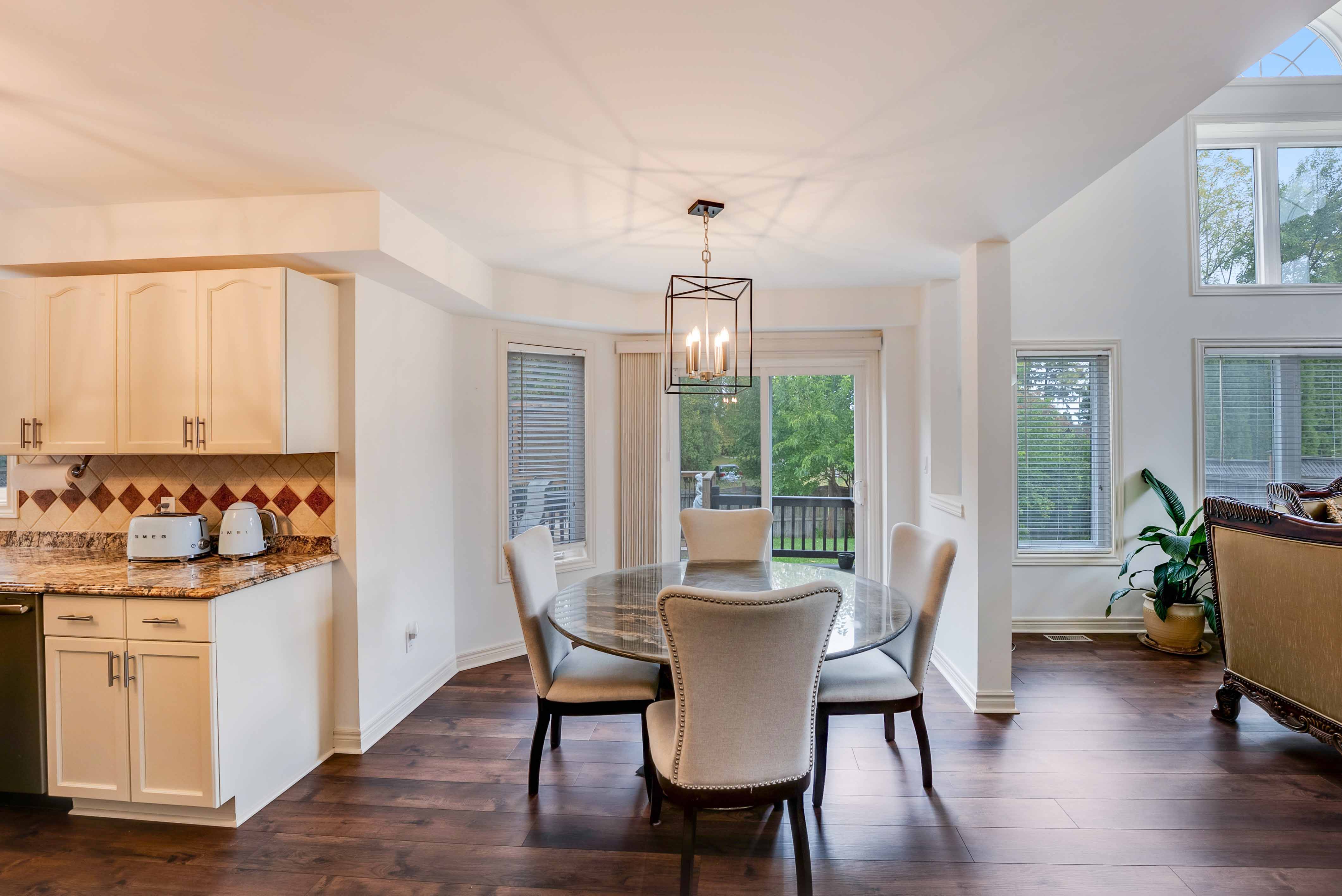 A rare highlight is the main floor bedroom retreat (~280 sq. ft.), ideal for in-laws or guests, featuring abundant natural light and serene views perfect for quiet mornings or personal downtime.